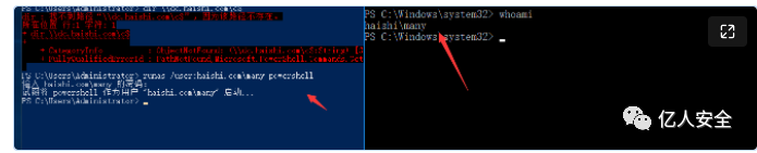 runas /user:haishi.com\many powershell 打开一个域用户权限的powershell