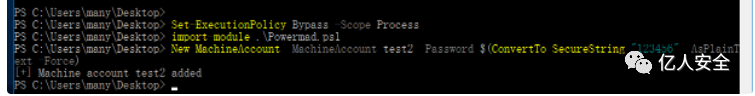New-MachineAccount -MachineAccount test2 -Password $(ConvertTo-SecureString "123456" -AsPlainText -Force)