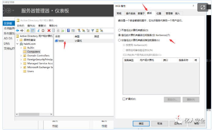 是将域用户的权限委派给服务账号,委派之后,服务账号就可以以域用户的身份去做域用户能够做的事