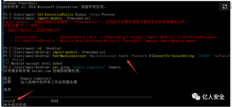 利用many域用户创建一个机器账户(每个域用户默认可以创建10个)