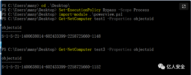 利用powerView查询机器账户的sid(也可手动)