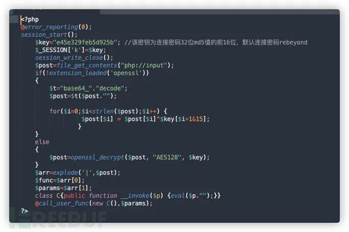在PHP中会判断是否开启openssl采用不同的加密算法,在代码中同样会存在eval或assert等字符特征