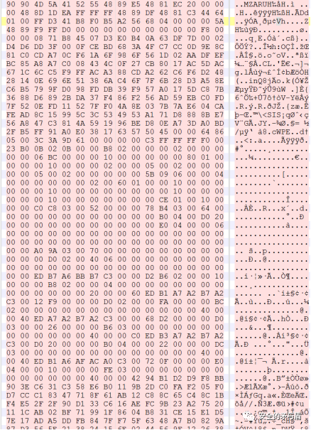 用010Editor打开文件,简单查看了下,发现文件当中存在明文字符串,整体来说此时样本比较奇怪。