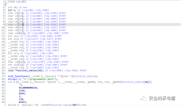 首先是函数sub_37DD,作用是动态获取一些函数的地址,并将函数地址存放到函数地址数组中,将该函数命名为init_functions,参数为function_tables。