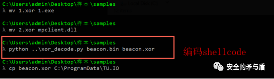 由此知道了样本3的上一层编码方法,对下载到本地的样本3进行两次解码,两次解码key分别为"POLICE"和"kuailele",得到一个beacon.bin文件,该文件即公鸡队生成的stageless shellcode文件。