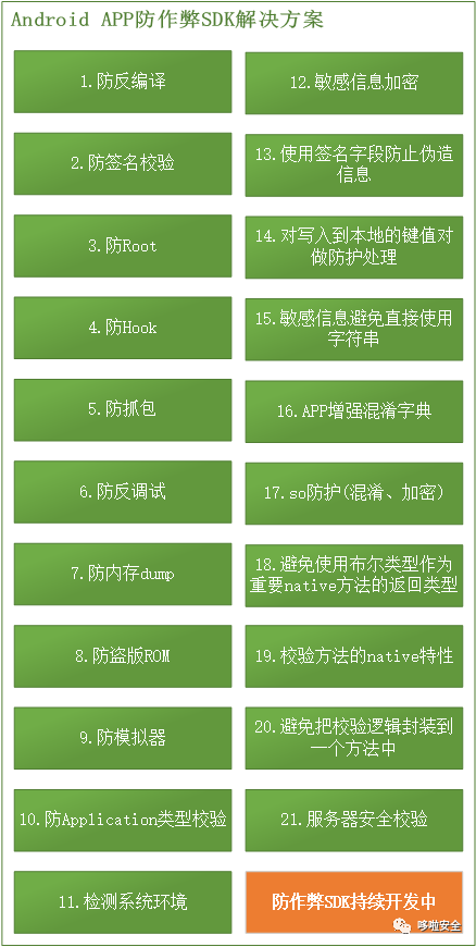 哆啦安全,通过自主研发安全产品,已推出Android APP防作弊SDK解决方案,该方案支持jar/aar/so等方式的SDK集成,操作简单、后续支持一键打包集成、兼容性/稳定性好,支持Android6.0至Android13等机型,更多防作弊策略持续开发中,目前已服务多家企业/用户,欢迎面临APP上架后无法过隐私合规检测、APP安全检测、APP漏洞检测、APP渗透测试、APP经常容易被非法破解/攻击、有数据安全保护、敏感信息保护等需求的企业/用户来"哆啦安全"进行商务合作!