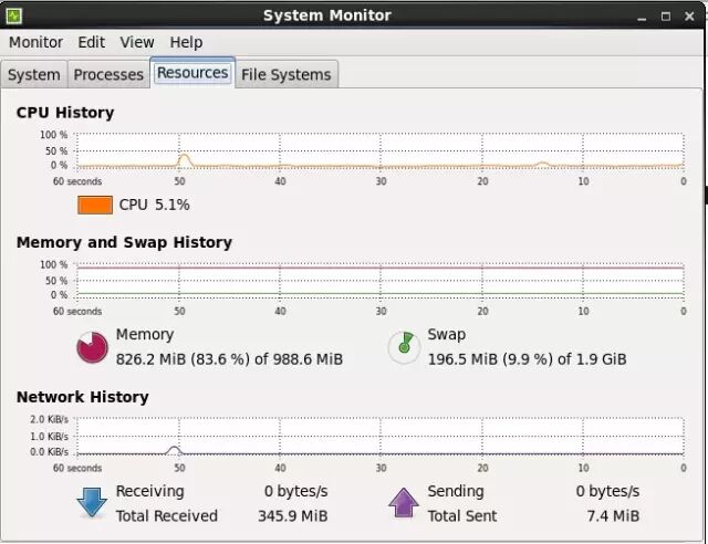[[email protected] ~]# gnome-system-monitor将会出现图形化工具GNOME System Monitor,如下图所示: