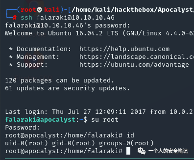 define('DB_COLLATE', ''); 进而查询 mysq 中的用户表,发现里面只有一个 falaraki。在没有取得更大信息收获的情况下,将 linpeas 脚本传递至目标服务器,运行脚本进一步深度收集信息,随后将执行结果通过 NC 传递回 kali: