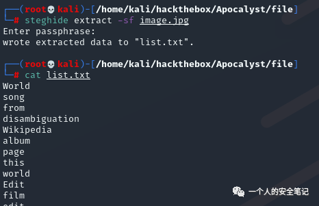 使用 steghide 对文件内容进行提取,密码是空的能直接得到文件: