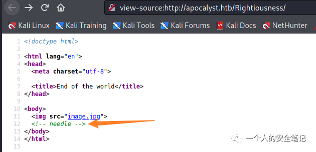 访问这个目录看到一张图片,它有一个很奇怪的注释信息 needle。