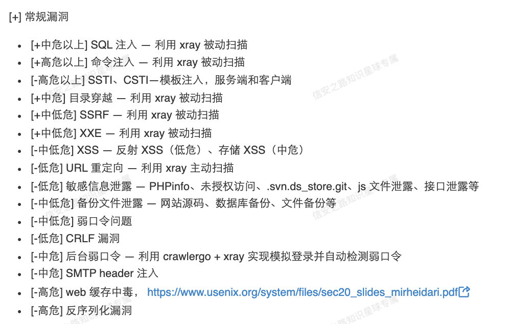 有些漏洞目前没办法很好的自动化发现,但是大部分都是可以的,这在我的实际测试中也是发现了不少,在未来可以将重点放在不太好自动化的漏洞上,毕竟工具发现不了的,才是目前漏洞最多的。