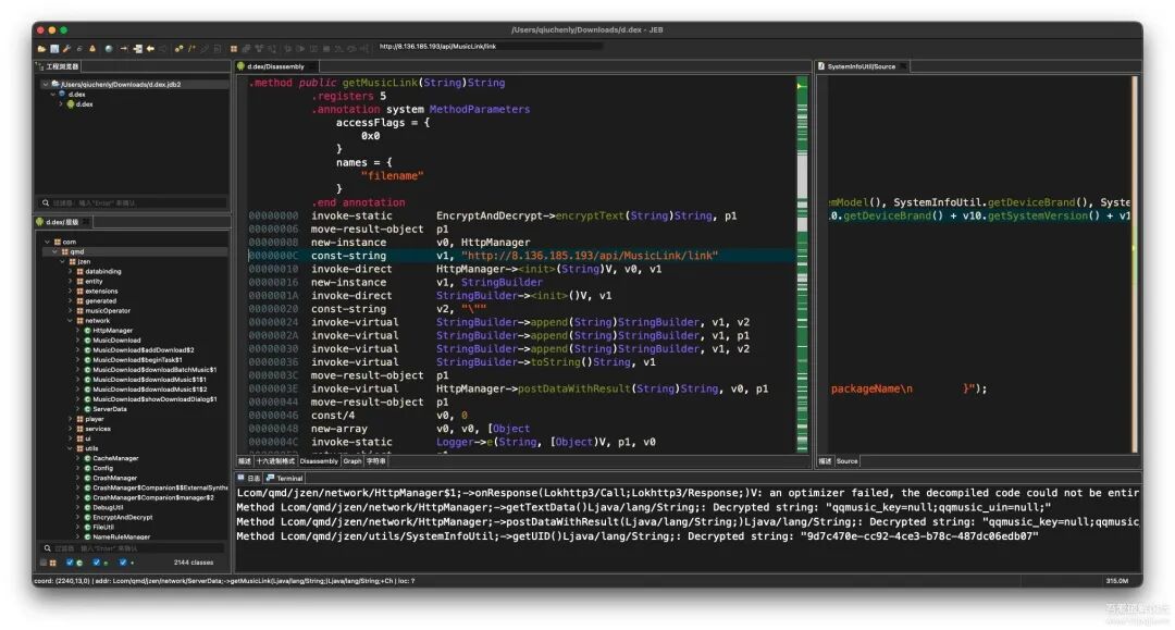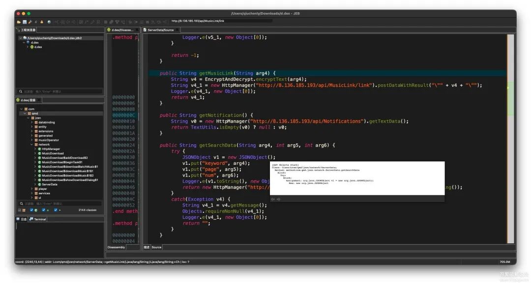 那么话不多说,jeb直接打开导出的dex看函数,搜索这个字符串。