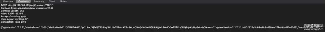 找到了,看来是从这个接口获取的数据,但是这个接口居然是POST提交,那么我们就有必要看看这个提交的数据SystemInfoUtil.getDeviceInfo()到底是什么东西: