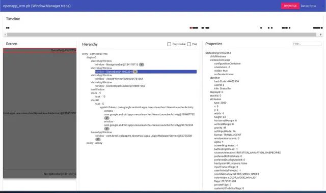 WindowManager: adb exec-out dumpsys window --proto > window_dump.pb