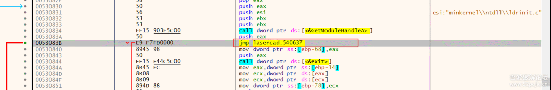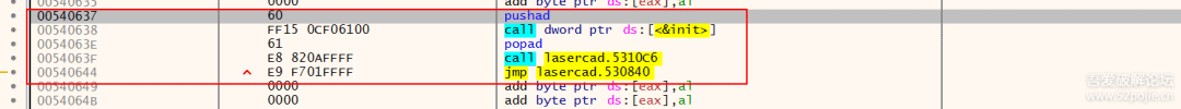 然后再跳回之前的下一行地址 jmp 0x00530840