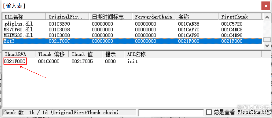 0x0061F00C 为基值 0x400000 + ThunkRAV(0x21F00C)