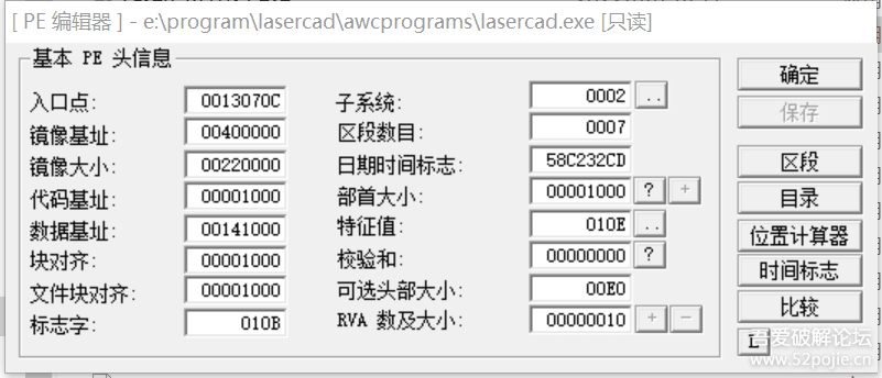 直接将LaserCAD.exe拖拽到LoadPE上方