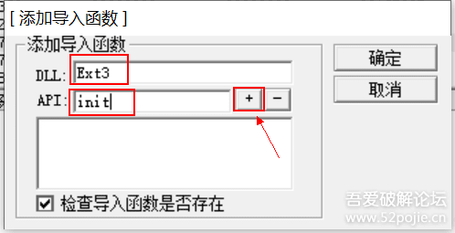 输入DLL的名称和需要导入的API名称,然后点击+号按钮