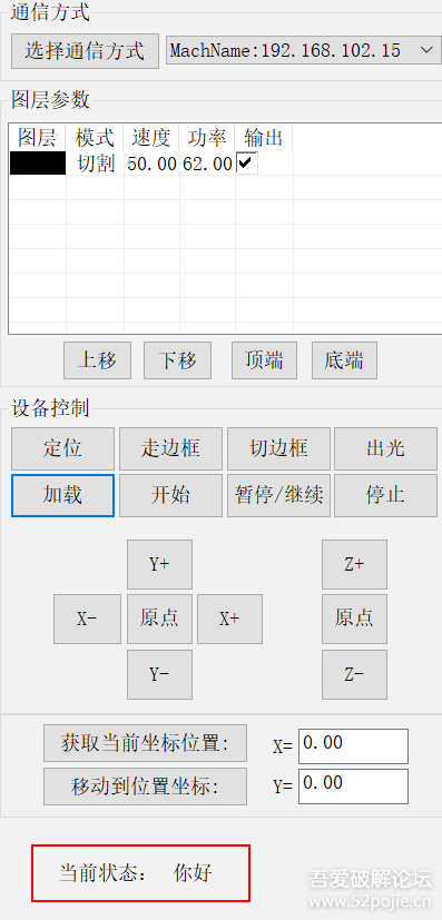 前几天搬工作室,电脑什么的都搬到百米远的地方,激光切割机因为体积大而且笨重,更重要的的是排烟的新工作室不好安装,所幸就暂时留在那了。最开始得到时候切割东西都是这边做好微信传输过去,拿笔记本在连接上切割机的WIFI,进行切割的,一整二整反复修改切割,除了百米“赛跑”外还要不停的切换WIFI,整的火气比较大。后来优化了一下,把切割机的路由器做了一下设置,桥接到主路由无线上(如果不重新设置切割机的IP,就使用子网的方式,映射IP端口到外部;设置的话可以选择把路由器当交换机使用),这样调整后的好处是不需要拷贝到另外一台电脑再操作,直接传输即可。但是又想要的新东西,在切割机工作的时候,软件(LaserCAD)并不会显示当前的是否处于“运行”还是“空闲”状态,虽然它在运行中的时候加载文件,会提示当前正在运行,并不是直观。所以决定在软件的控制面板的底下添加一个用来显示当前状态的文本作为提示,然后也就有了这篇文章。 获取激光切割机的状态