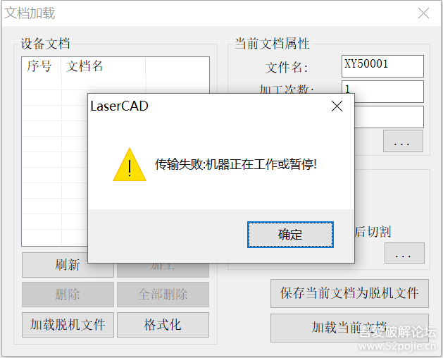 后面发现了激光切割机在运行的时候加载文档会提示: