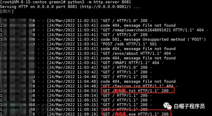 没过多久,防守队再次发现我们的http服务,并且下载了我们的钓鱼木马。