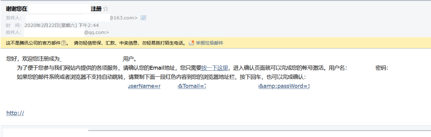 刚好包含了我注册的用户信息,那么,如果我直接构造一个URL,点击之后是不是就能跳过邮箱验证来激活账号了?