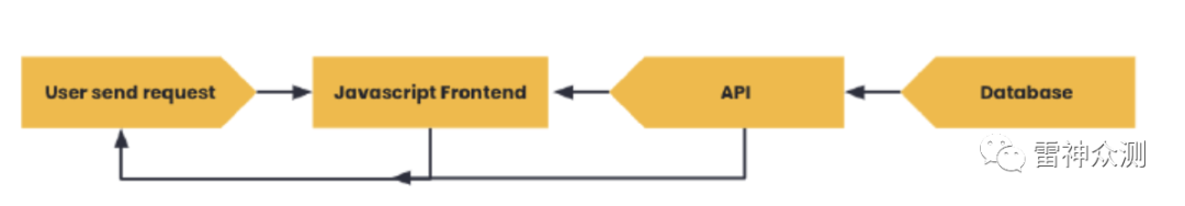 许多现代网络应用倾向于遵循一种不同的模式,通常被称为SPA(单页应用)。在这种模式下,通常有一个API后端,一个JavaScript用户界面和数据库。API只是作为网络应用程序和数据库之间的一个接口。所有对API的请求都是直接从网络浏览器发出的。