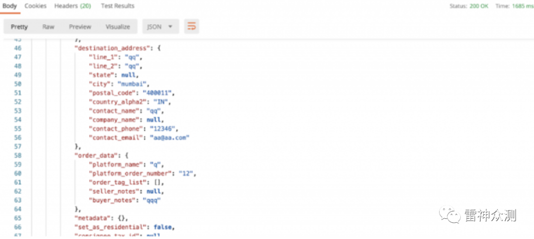 Postman中的响应视图是这样的,响应也被分成不同的部分,如Body、Cookies、Headers等,所以你可以仔细分析每个部分。
