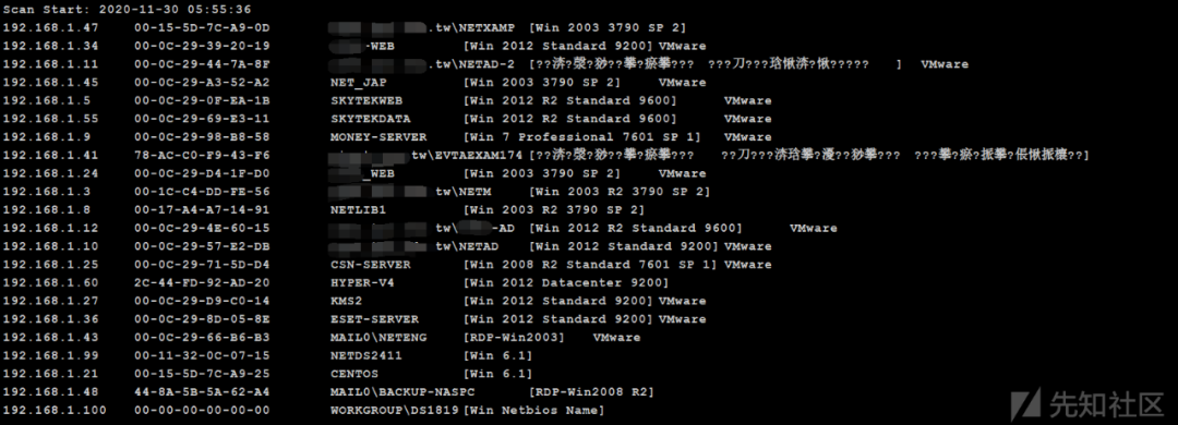 可以看出内网是存在大量存活的主机的,虽然这台WEB服务器并没有域环境,但是扫描的结果中有着AD等敏感词汇,初步估计内网至少有两个域环境,这时候就需要横向进一步做信息搜集,并刻画出内网拓扑图。