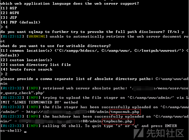 含泪拿着绝对路径,直接SQLMAP中--os-shell