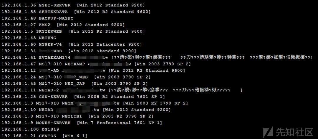 可以看出内网确实有几台机器可能存在MS17-010,这里一台一台打太浪费时间了,主要有不确定性,他的WEB服务器是装了杀软的,内网也应该是有杀软的,所以这里我将目标放在一台可能是域内主机的服务器上。