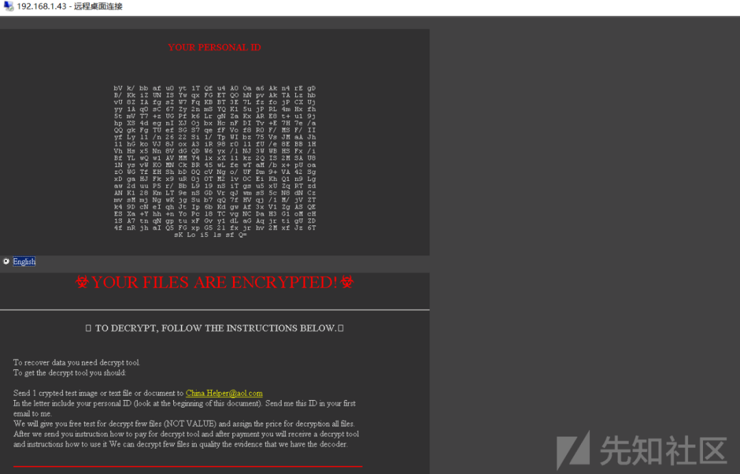 由于上一次看这个站在一个月之前,写本文的时候复现17010没有成功,因为先前在目标机器添加了个账号,所以就登上去看了下,发现服务器已经被某位不知名的大黑阔给上了勒索软件。