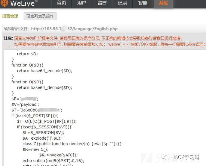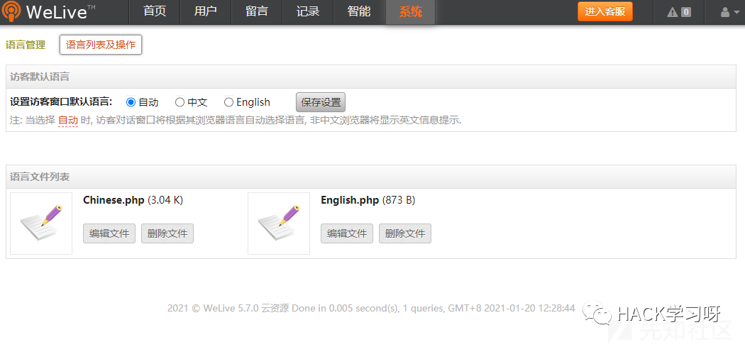 下一步当然是getshell,找了一圈发现直接可编辑语言配置文件: