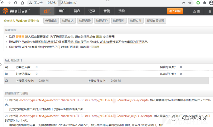 从官网查找客服软件的教程。发现后台路径为:/admin