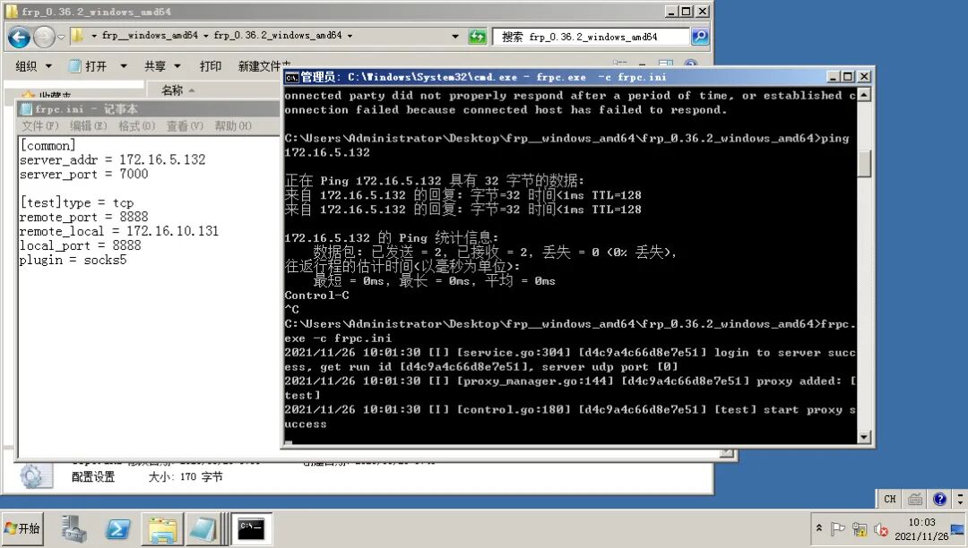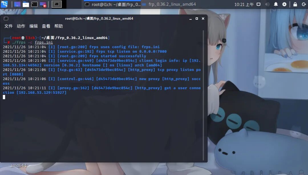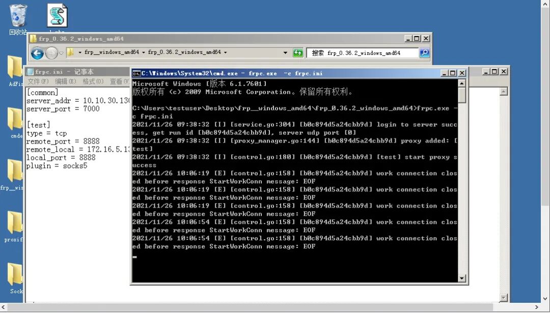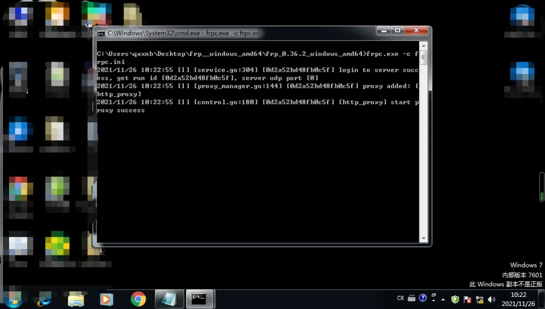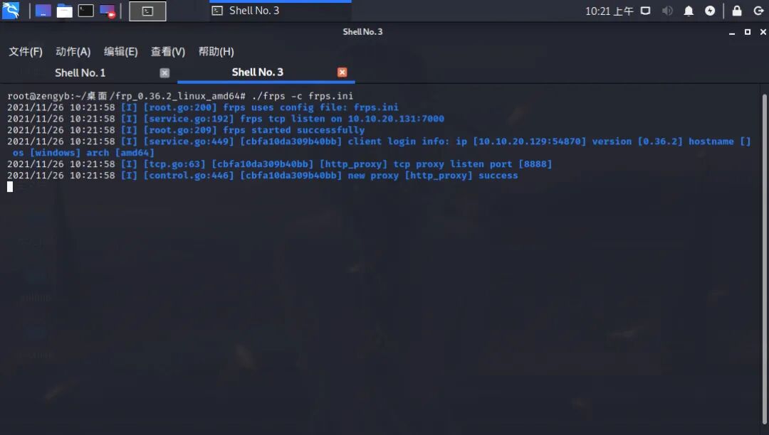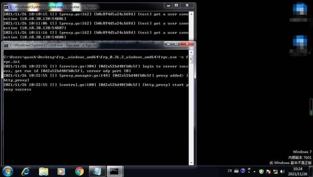 kali和Debian配置不需要改动,Win7的frpc和frps配置参考上一条Debian配置,这边就不再次体现了,然后Win10的frpc配置参考上面的Win7的frpc配置