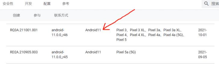 安卓Aosp源码中支持很多个设备的镜像编译,在编译之前需要配置对应设备依赖的驱动文件。此处下载 的源码版本为:android-11.0.0_r46。对应安卓源码代号为:RQ3A.211001.001。具体源代码版本对应的 代号以及支持的手机设备可以如下官网中查找:https://source.android.google.cn/setup/start/build- numbers。如下是该官网中找到的本编译版本结果。如下所示: