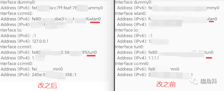 好的,至少是过了,注意ccmni2的值wlan0,ccmni1的值还是tun0,如果你想改的更彻底一点的话,可以再把这个值也改了,或者把值置空,这里我就不去操作了,自己研究了。