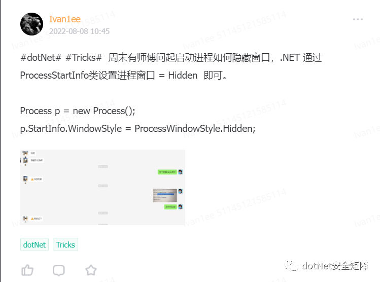 有师傅问起启动进程如何隐藏窗口?.NET 通过ProcessStartInfo类设置进程窗口 = Hidden