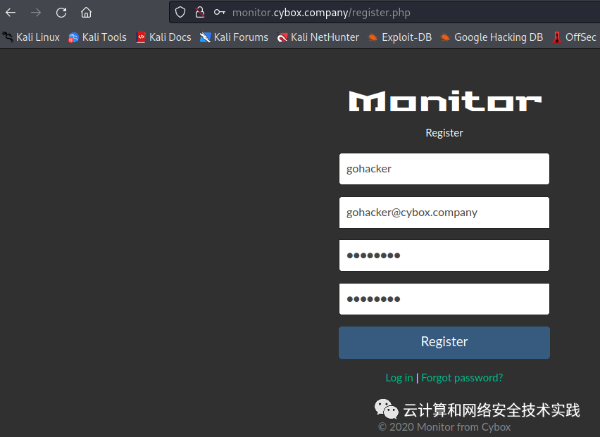 再访问monitor域名的页面同样注册新账号,gohacker,