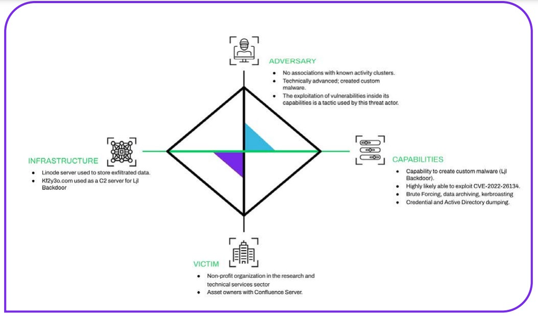 近日,研究人员在报告中指出 TAC-040 组织利用 Atlassian Confluence 服务器中的漏洞 CVE-2022-26134 部署新后门 Ljl Backdoor 展开攻击。此次攻击发生在 5 月底,持续了 7 天,约 700MB 的数据在攻击事件中遭到泄露。攻击者通过利用 Atlassian Confluence 服务器中的漏洞 CVE-2022-26134 获得初始访问权限,运行命令枚举本地系统、网络和 Active Directory 环境,使用 Atlassian Confluence 目录中的 tomcat9.exe 父进程执行恶意命令,部署 Ljl Backdoor后门,然后加载远程 .NET 程序、遍历文件目录信息、获取受害者账户信息及系统信息,最后通过压缩文件等方式泄露信息。