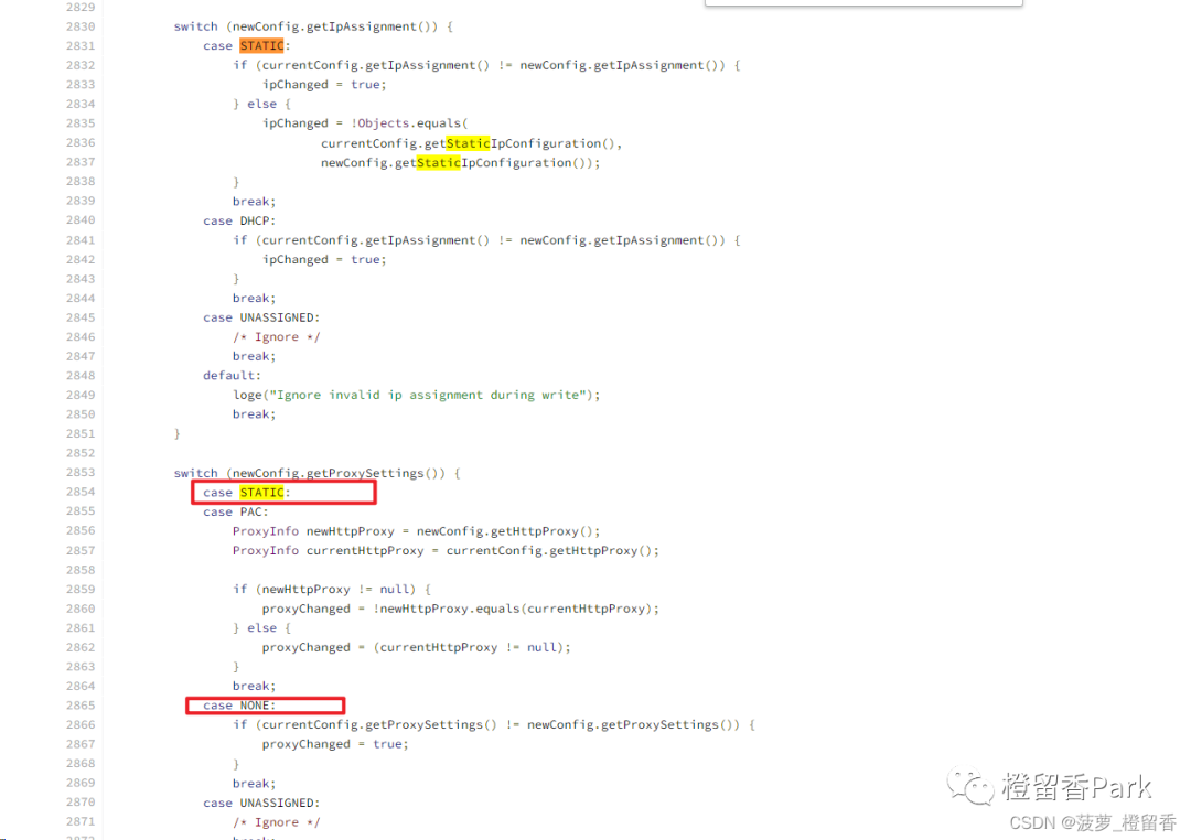 源码中,我们已知,wifi配置时有两种状态,一种是直连(NONE),一种是配置了代理(STATIC)后有的状态: