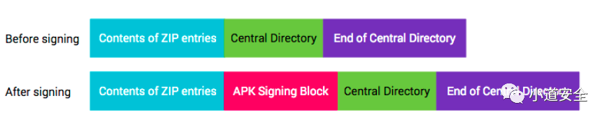 V2签名,它会在 APP文件中插入一个APP签名分块,该分块位于“ZIP 中央目录”部分之前并紧邻该部分。在“APP签名分块”内,v2 签名和签名者身份信息会存储在 APK 签名方案 v2 分块中。