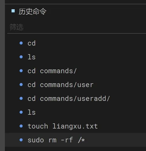一般情况下,我们需要查看之前输入过的命令,都是使用 history 命令。而 WindTerm 则直接在右侧给你带了一个历史命令的窗口,你连 history 命令也都省了!