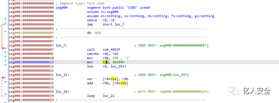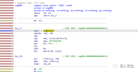 继续看上方的loc_2F,MZ头部的0x4D5A对应的pop r10后做了一次逆向操作,随后调用了sub_16023.