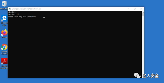 为验证这五行代码是否起到我预料的效果,我用c实现了一份类似功能的exe准备传入微步沙箱,若微步沙箱的程序运行截图中存在"sandbox!!!"则代表检测到沙箱。