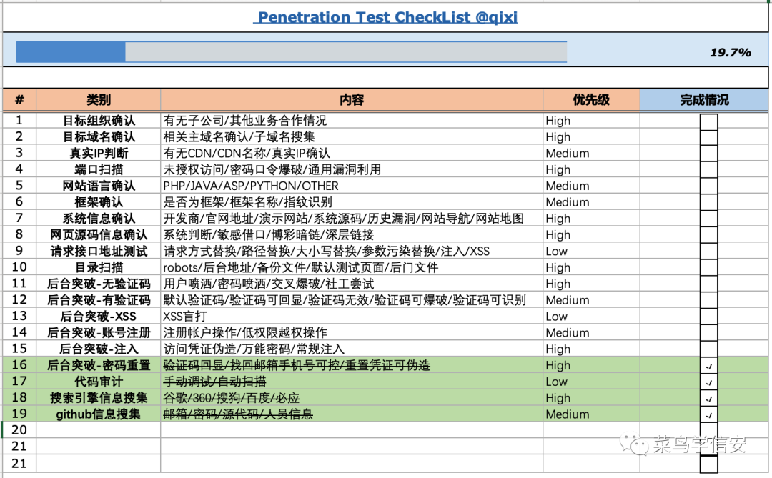 常规的渗透测试checklist,帮助强迫症和忘性患者梳理思路。