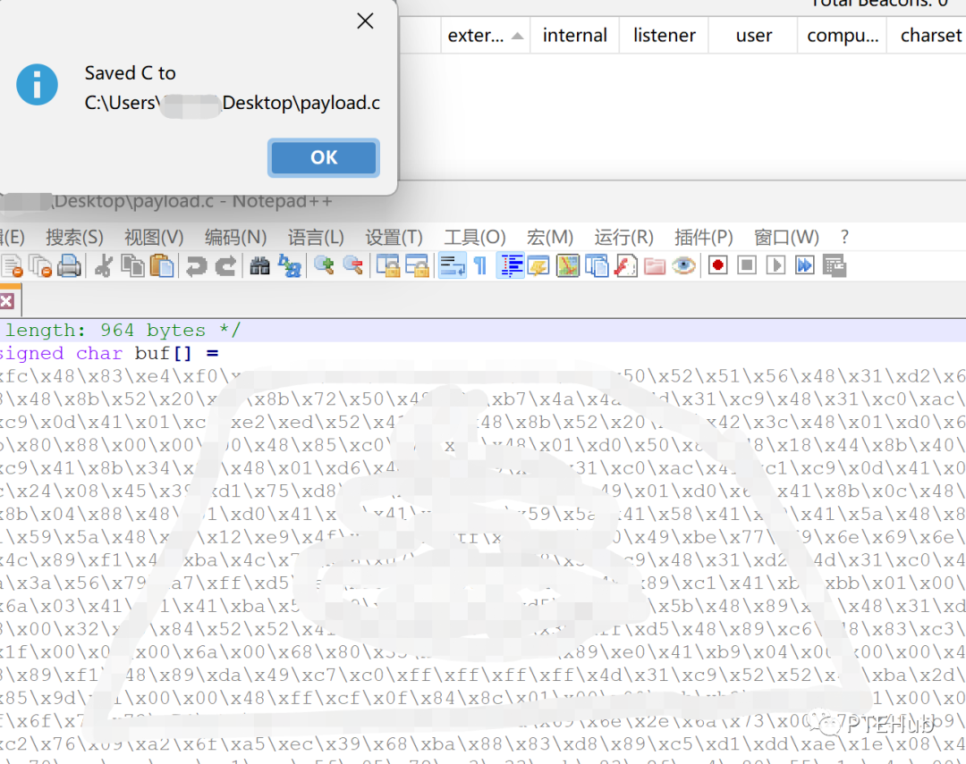 shellcode是什么就不用过多解释了,不懂得去百度,这里直接CS生成一段C的shellcode并保存即可。