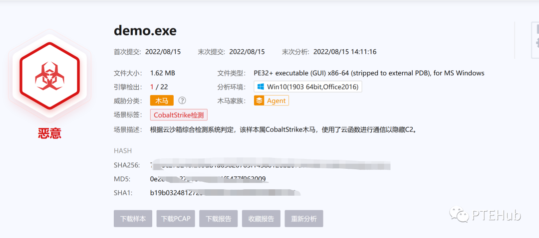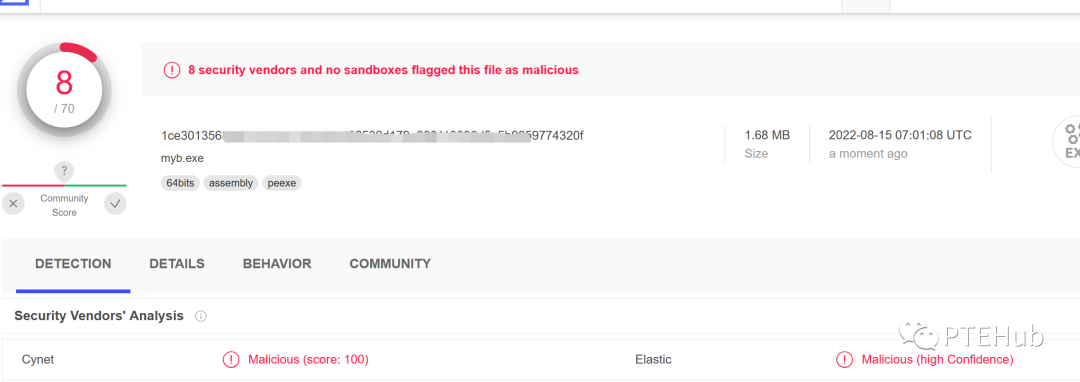将样本丢到微步沙箱内发现并不理想,沙箱很快就识别为恶意程序。